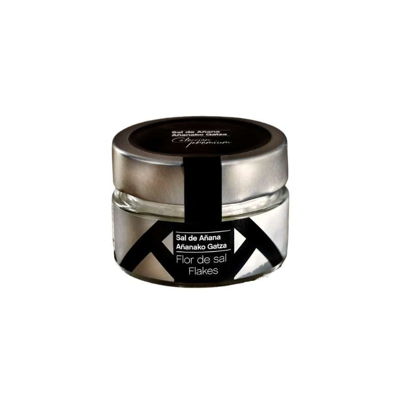 Fleur de sel d'Añana en écailles texturées croquantes qui se forment à la surface des salines au fur et à mesure que la saumure s'évapore.