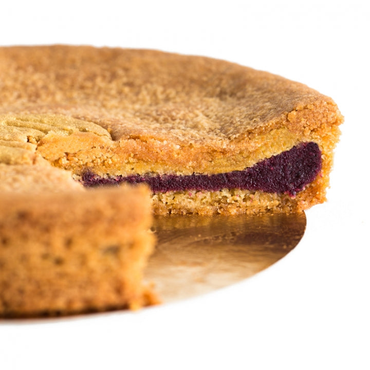 pâte sablée (sucre, beurre AOP, jaune d’œuf, amande, farine de riz*, farine de maïs*, fécule de maïs*, levure*, vanille de Madagascar, fleur de sel), intérieur confiture (cassis 66%, sucre, jus de citron jaune concentré, pectine); crème (lait, sucre, jaune d’œuf, fécule de maïs*, fécule de riz*, citronnelle 3%)