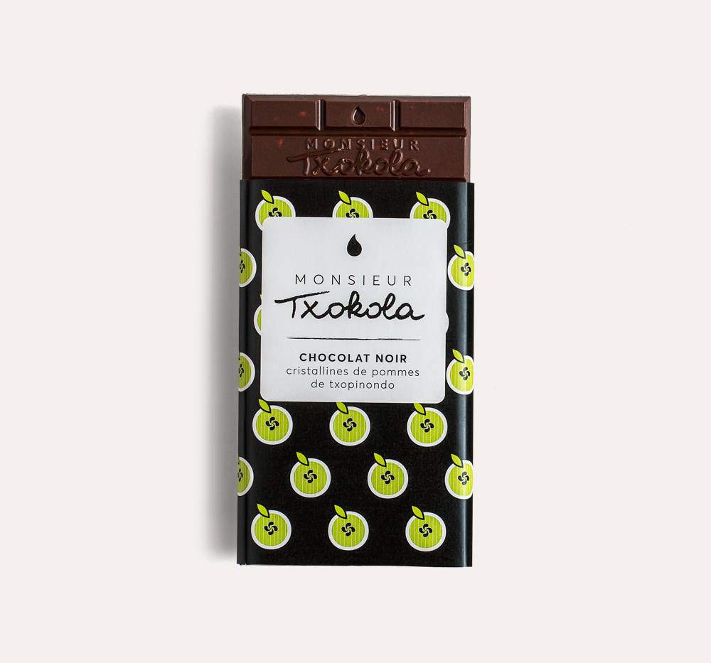 Chocolat noir 64% aux cristallines de pommes de Txopinondo - Artisanal
