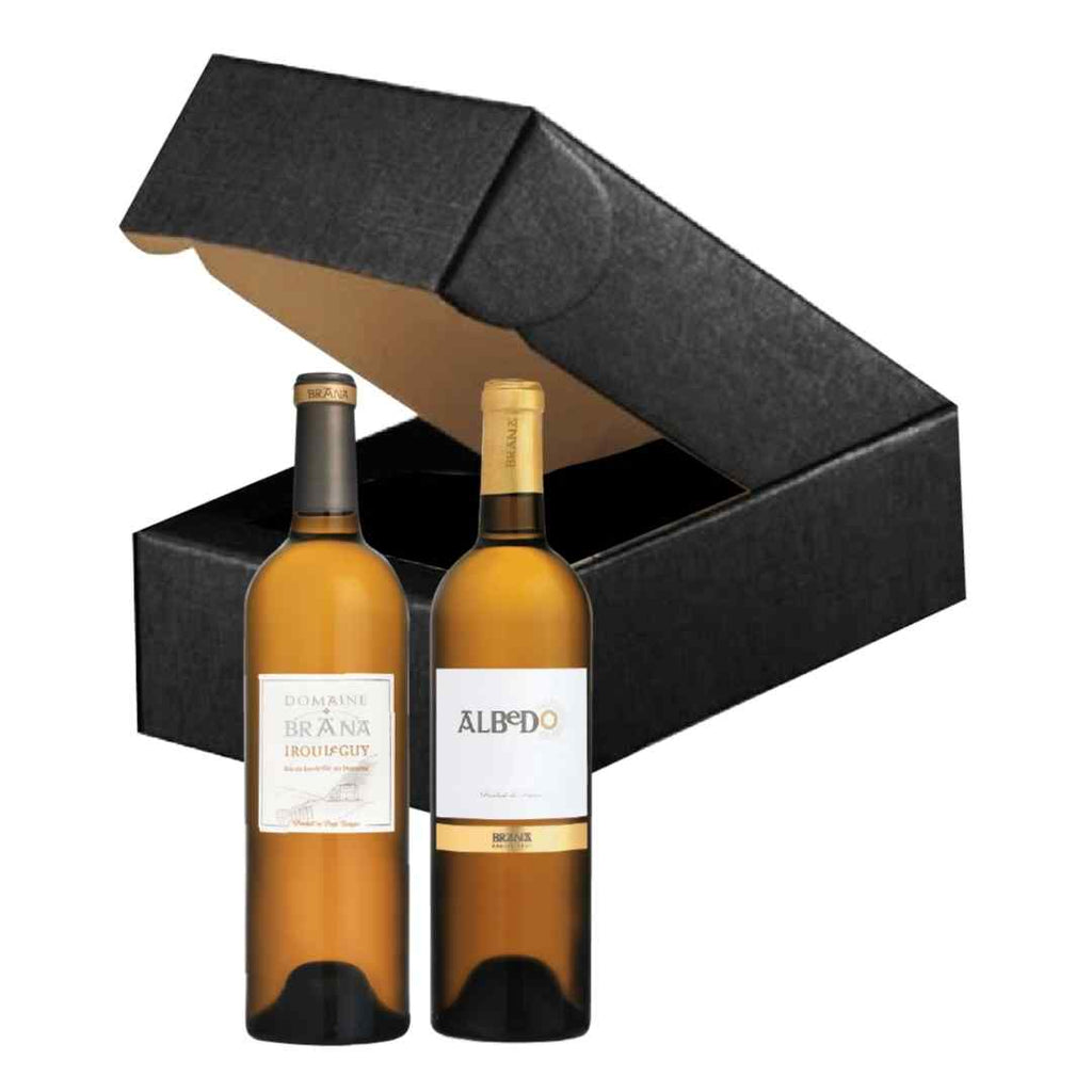 This Basque gift box is composed of two bottles of white wine from the Brana estate as well as a black gift box.