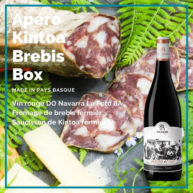 A concentrate of the Basque Country comes to your home with this Basque aperitif box: a farmhouse Kintoa Basque pork sausage and farmhouse sheep's cheese made with AOP Ossau-Iraty raw milk or organic farm or summer milk and matured for at least 4 months, as well as a wine from the Basque province of Navarre with the DO Navarra appellation. A fresh, fruity and elegant red wine, a wine to drink with friends, to savor the moment.